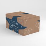 De cadeaudoos SPARKLE heeft een tijdloze uitstraling en is beschikbaar in vier varianten. De basis is naturel kraftkarton, afgewerkt met een stijlvolle ster in zwart, groen, blauw of rood. Een feestelijke verpakking voor elk moment.